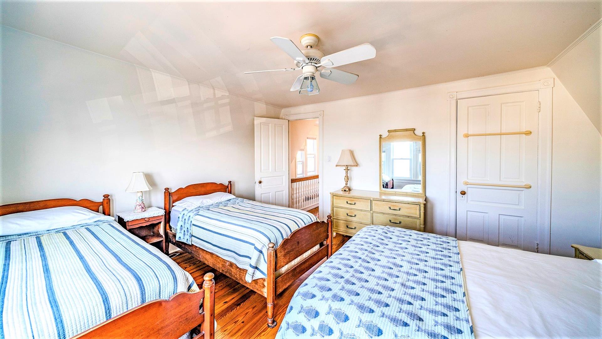 Third Floor: 3 more bedrooms and another full bath. Sleeping options include a Queen, Full, and a fun front bedroom with two Twins, a Queen, and unobstructed beach views perfect for the kids.