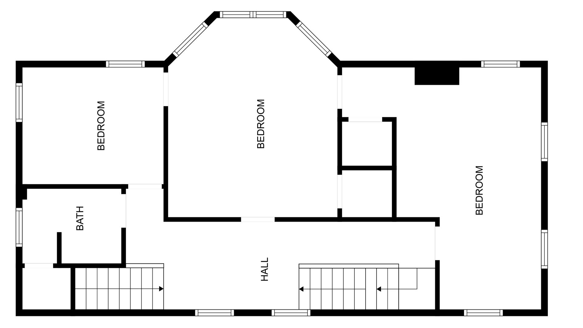 Second Floor: 3 bedrooms and 1 full bath. Each bedroom connects with privacy doors and has its own hallway entrance. Two Queen rooms and a Twin room with ocean views.