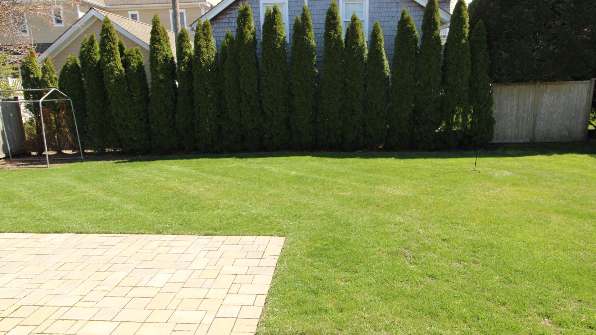Large backyard patio with outdoor seating and dining great for evening cookouts